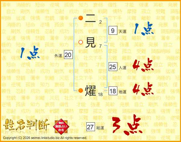 二見燿さんの総運は27画の3点!