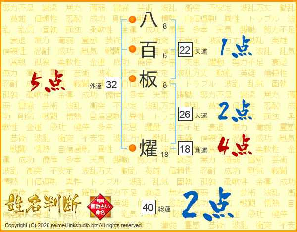 八百板燿さんの人運は26画の2点!