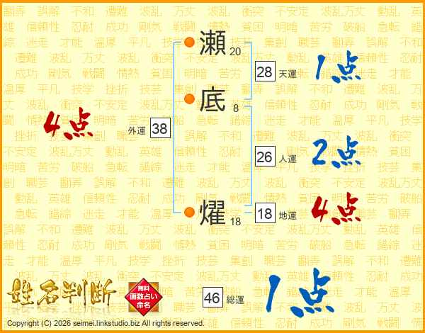 瀬底燿さんの総運は46画の1点!