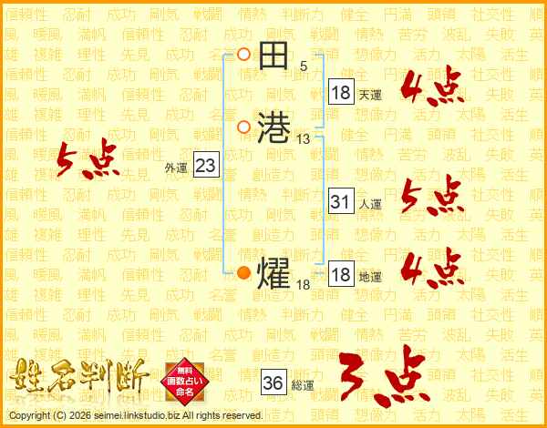 田港燿さんの総運は36画の3点!