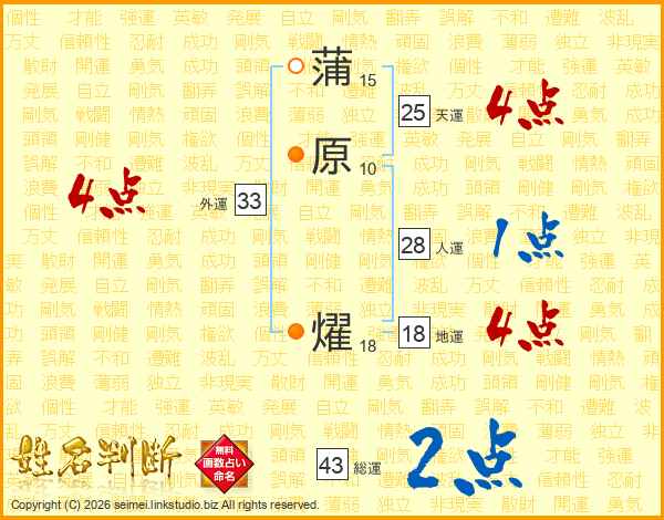 蒲原燿さんの天運は25画の4点!
