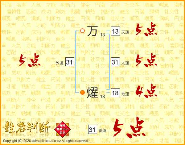 万燿さんの総運は31画の5点!