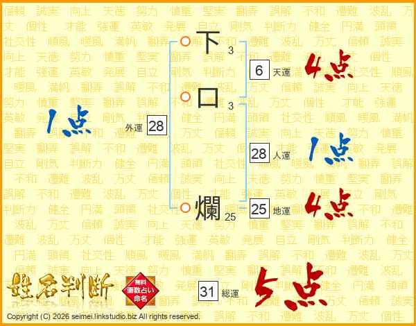 下口爛さんの総運は31画の5点!