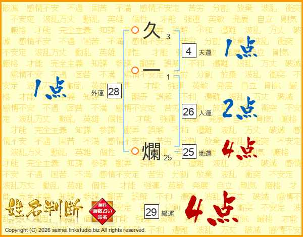 久一爛さんの総運は29画の4点!