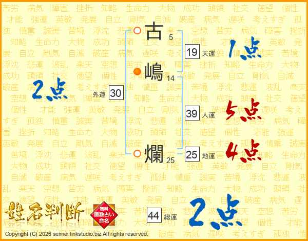 古嶋爛さんの人運は39画の5点!