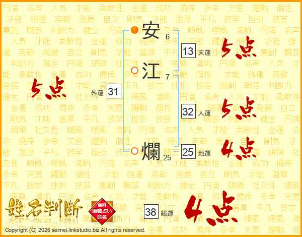 安江爛さんの総運は38画の4点!