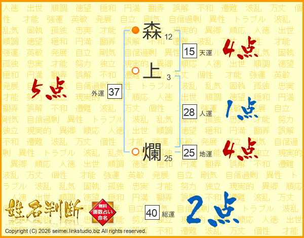 森上爛さんの総運は40画の2点!