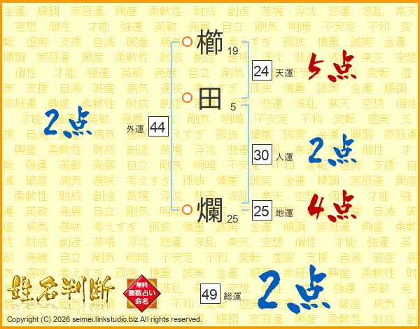 櫛田爛さんの総運は49画の2点!