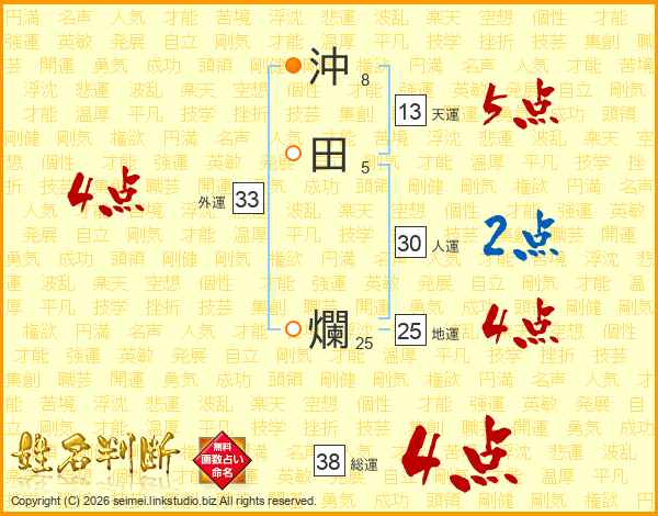 沖田爛さんの総運は38画の4点!
