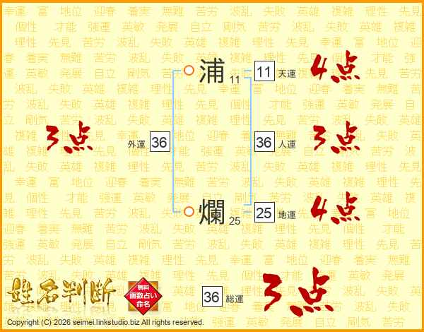 浦爛さんの天運は11画の4点!