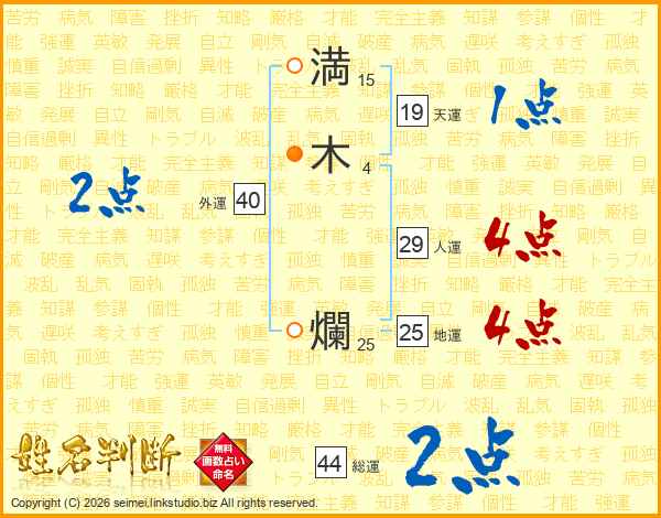 満(15画)木(4画) 爛(25画)
