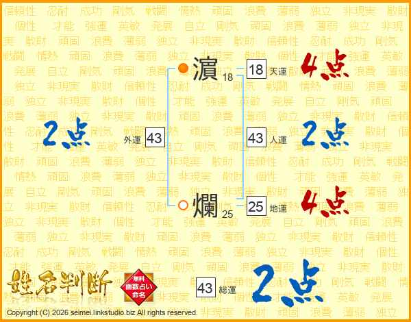 濵爛さんの人運は43画の2点!