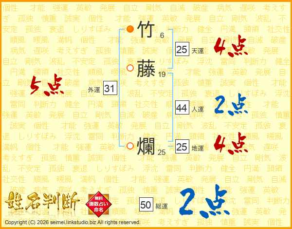 竹藤爛さんの総運は50画の2点!