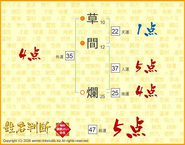 草間爛さんの総運は47画の5点!