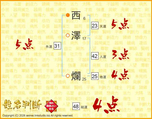 西澤爛さんの総運は48画の4点!