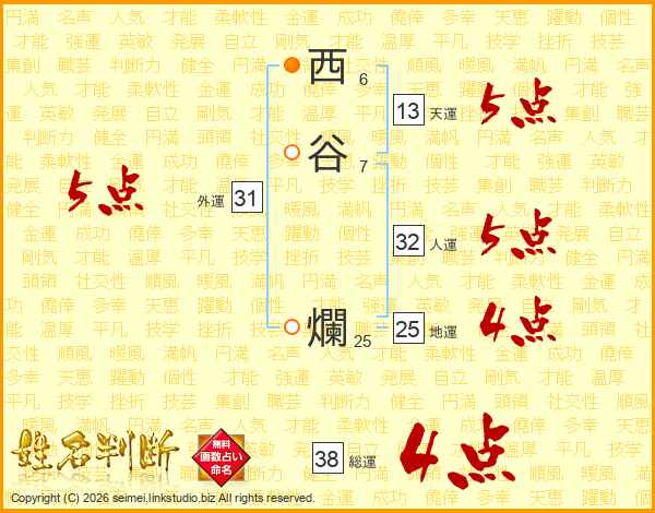 西谷爛さんの総運は38画の4点!