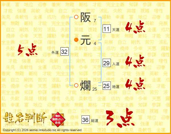 阪元爛さんの天運は11画の4点!