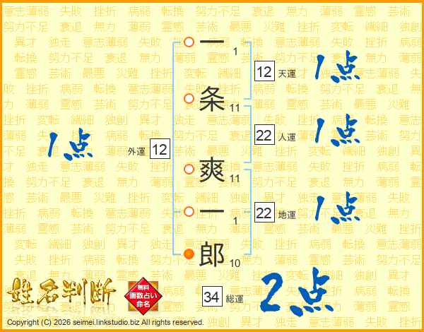 一(1画)条(11画) 爽(11画)一(1画)郎(10画)