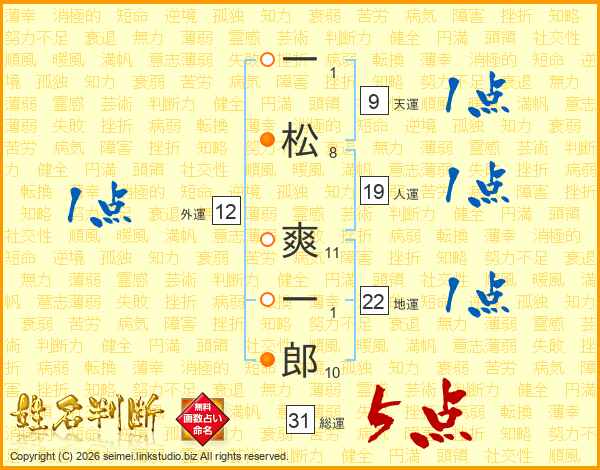 一松爽一郎さんの総運は31画の5点!