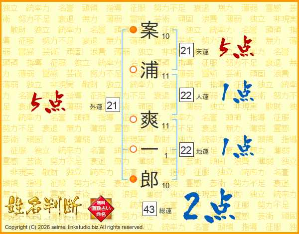 案浦爽一郎さんの外運は21画の5点!