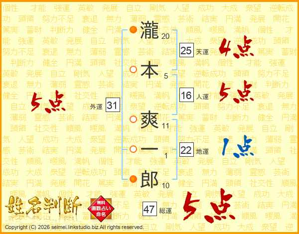 瀧(20画)本(5画) 爽(11画)一(1画)郎(10画)