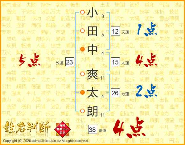 小田中爽太朗さんの総運は38画の4点!