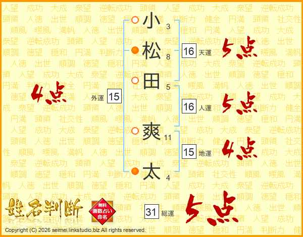 小(3画)松(8画)田(5画) 爽(11画)太(4画)