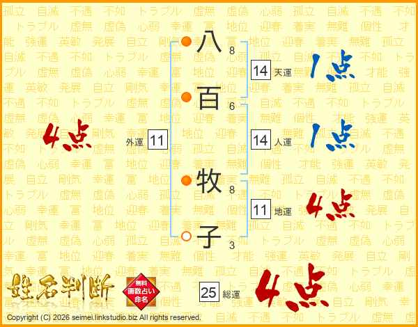 八百牧子さんの総運は25画の4点!