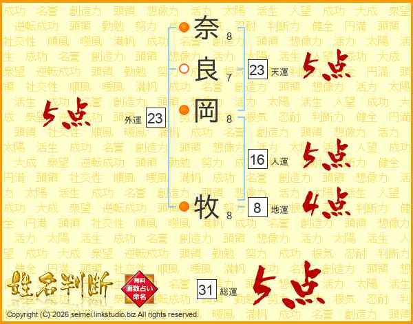 奈良岡牧さんの天運は23画の5点!