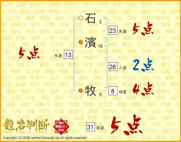 石濱牧さんの総運は31画の5点!