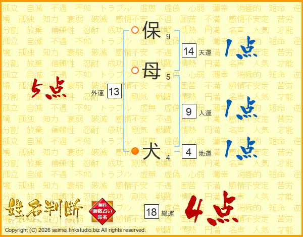 保母犬さんの総運は18画の4点!