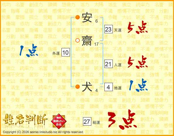 安齋犬さんの天運は23画の5点!