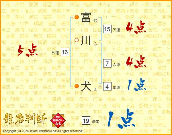 富川犬さんの天運は15画の4点!