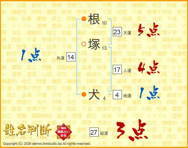 根塚犬さんの総運は27画の3点!