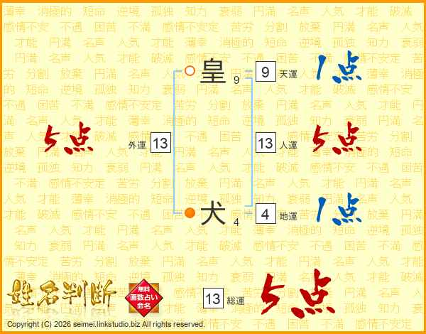 皇犬さんの総運は13画の5点!