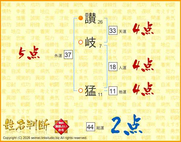 家系が持つ宿命的な運勢を表します。祖先から受け継いだ苗字ですので自分の力が及びません。家柄を象徴します。苗字の合計画数。