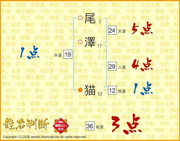 尾澤猫さんの総運は36画の3点!