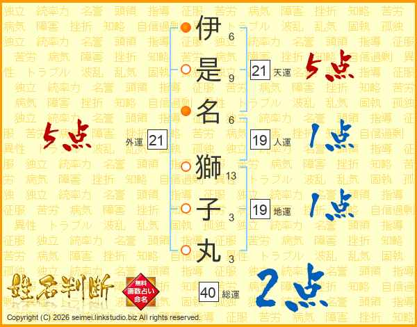 伊是名獅子丸さんの外運は21画の5点!