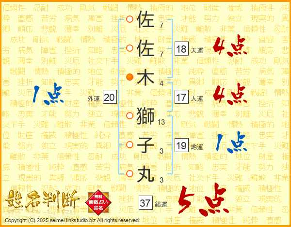 佐佐木獅子丸さんの総運は37画の5点!