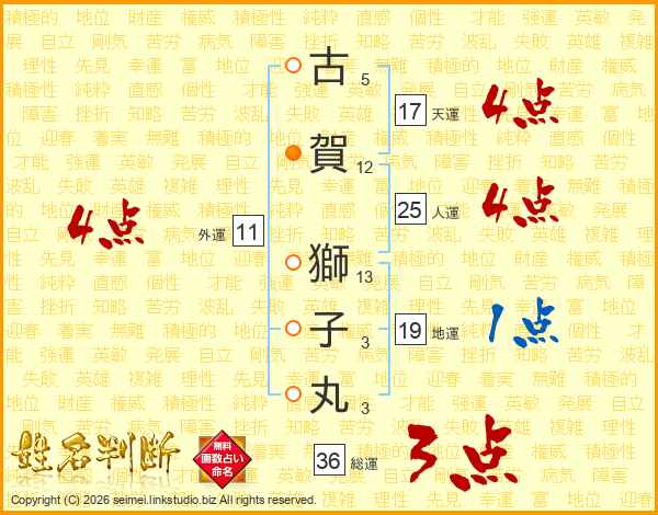 古賀獅子丸さんの天運は17画の4点!