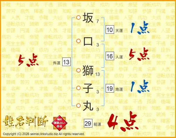 坂口獅子丸さんの総運は29画の4点!