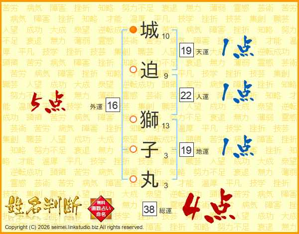 城迫獅子丸さんの総運は38画の4点!