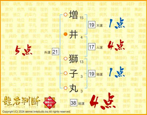 増井獅子丸さんの総運は38画の4点!