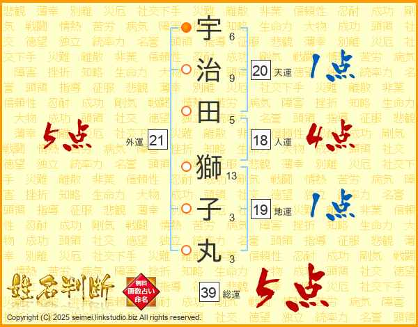 宇治田獅子丸さんの総運は39画の5点!