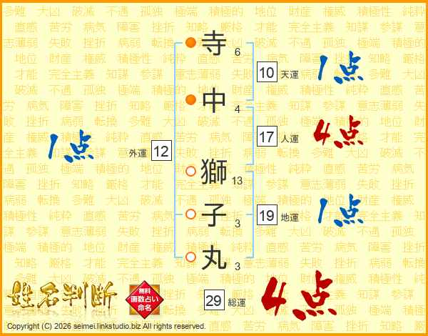 寺中獅子丸さんの総運は29画の4点!