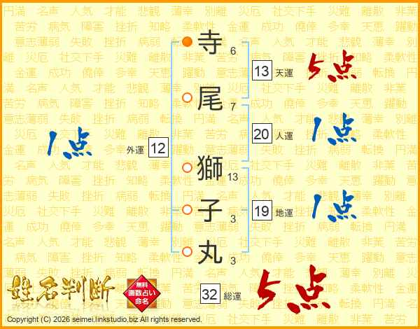 寺尾獅子丸さんの総運は32画の5点!