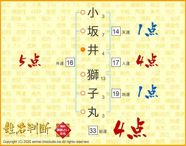 小坂井獅子丸さんの総運は33画の4点!