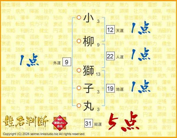小柳獅子丸さんの総運は31画の5点!
