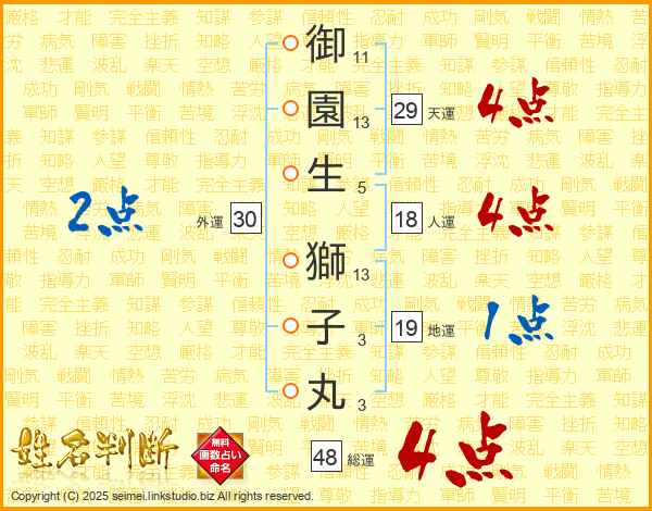 御園生獅子丸さんの総運は48画の4点!