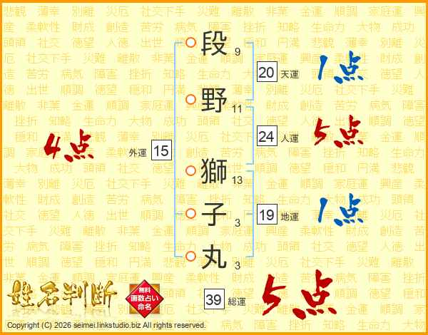 段野獅子丸さんの総運は39画の5点!